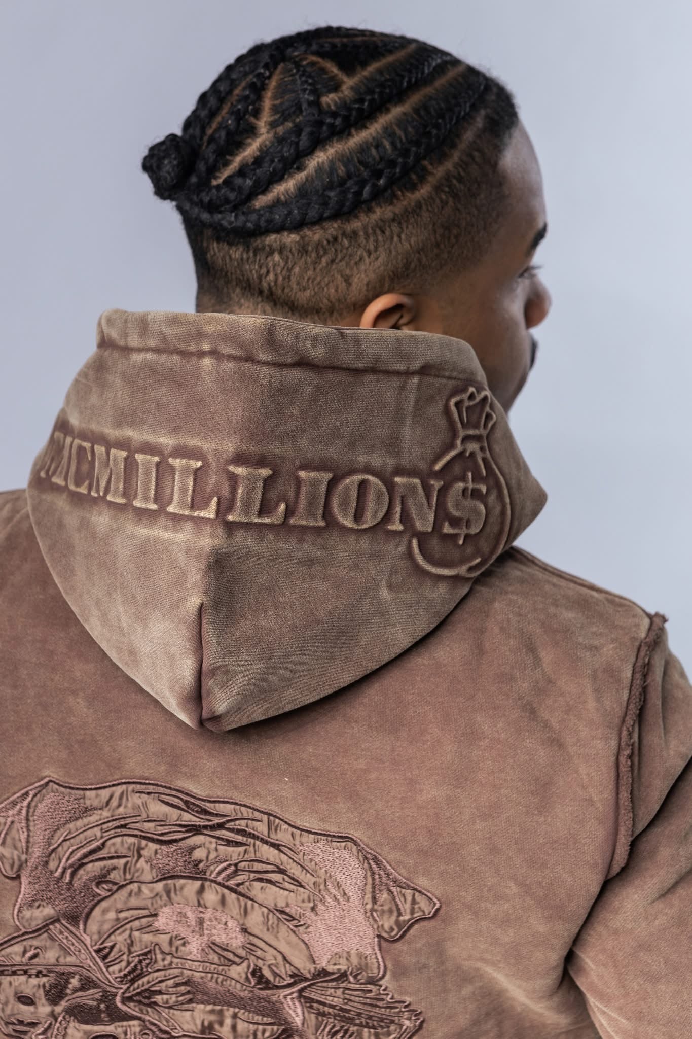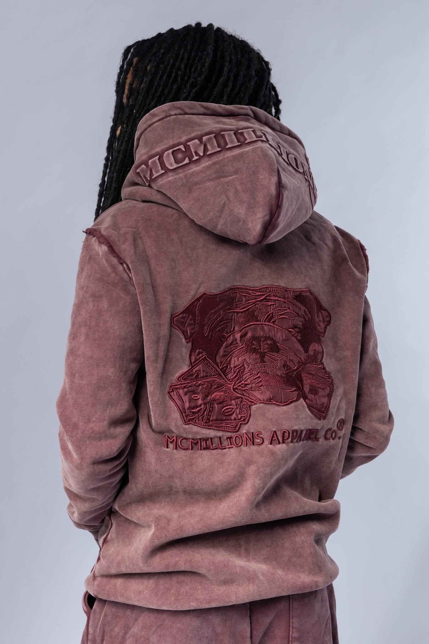 Our Fine acid washed combed cotton hoodie is a very distinguished asset for everyday casual wear. Our McMillions logo is embossed on the chest and hood with our embroidered Shogun Bulldog logo on the back.